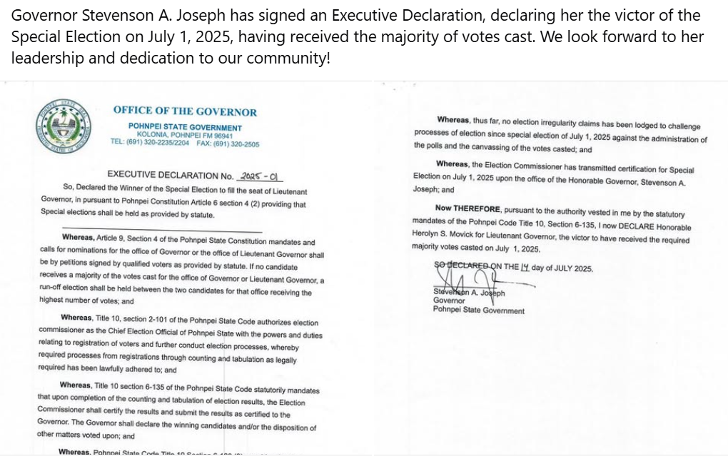 FSM Pohnpei Lt Gov 2025